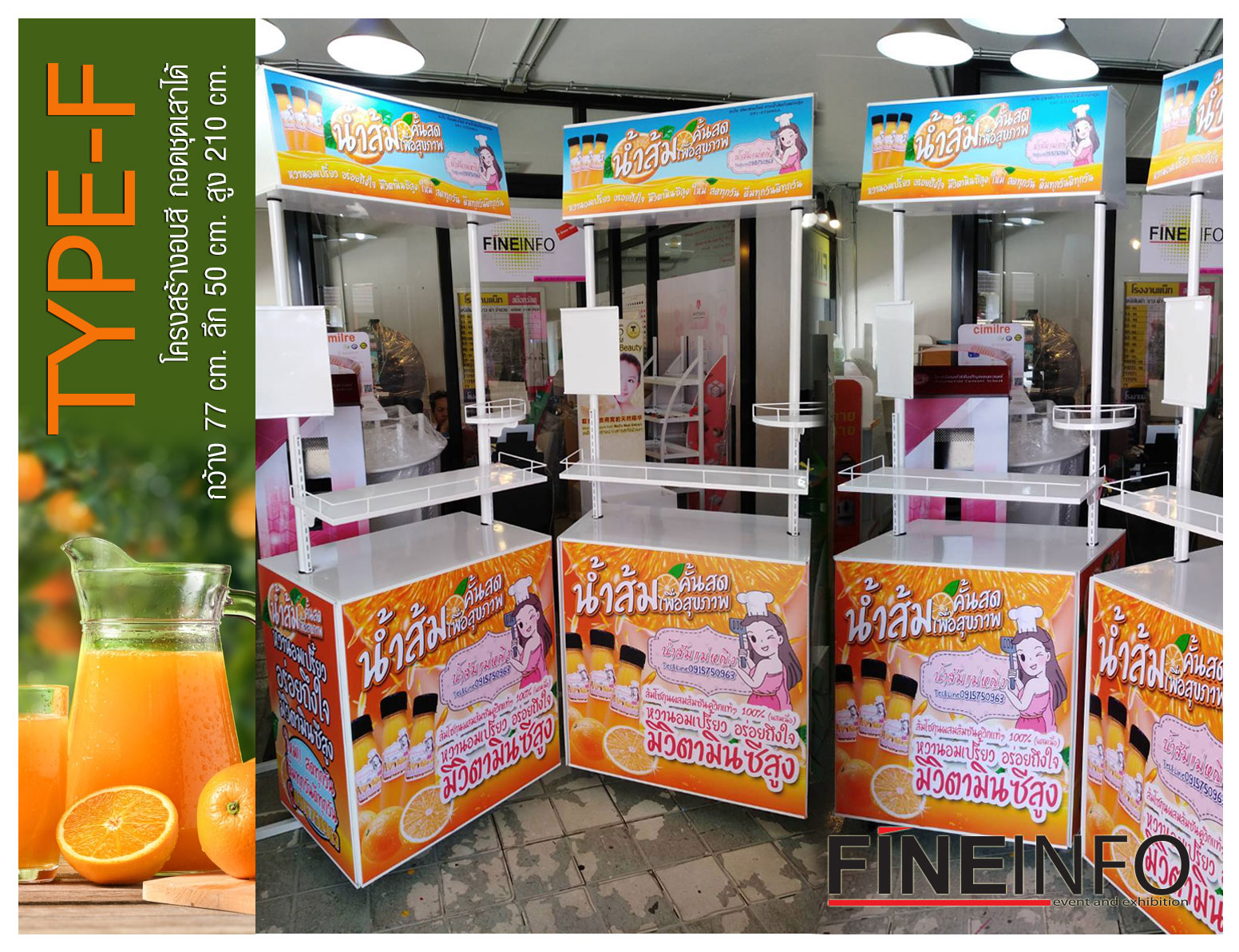 Code :Type F : 15,500 B. (พร้อมงานพิมพ์) รายละเอียด : โครงสร้างเหล็กอบสีขาว หน้ากว้าง 77 cm ลึก 50 cm สูง 210 cm. งานพิมพ์ PP Board หนา 4 mm(สามารถถอดประกอบได้)