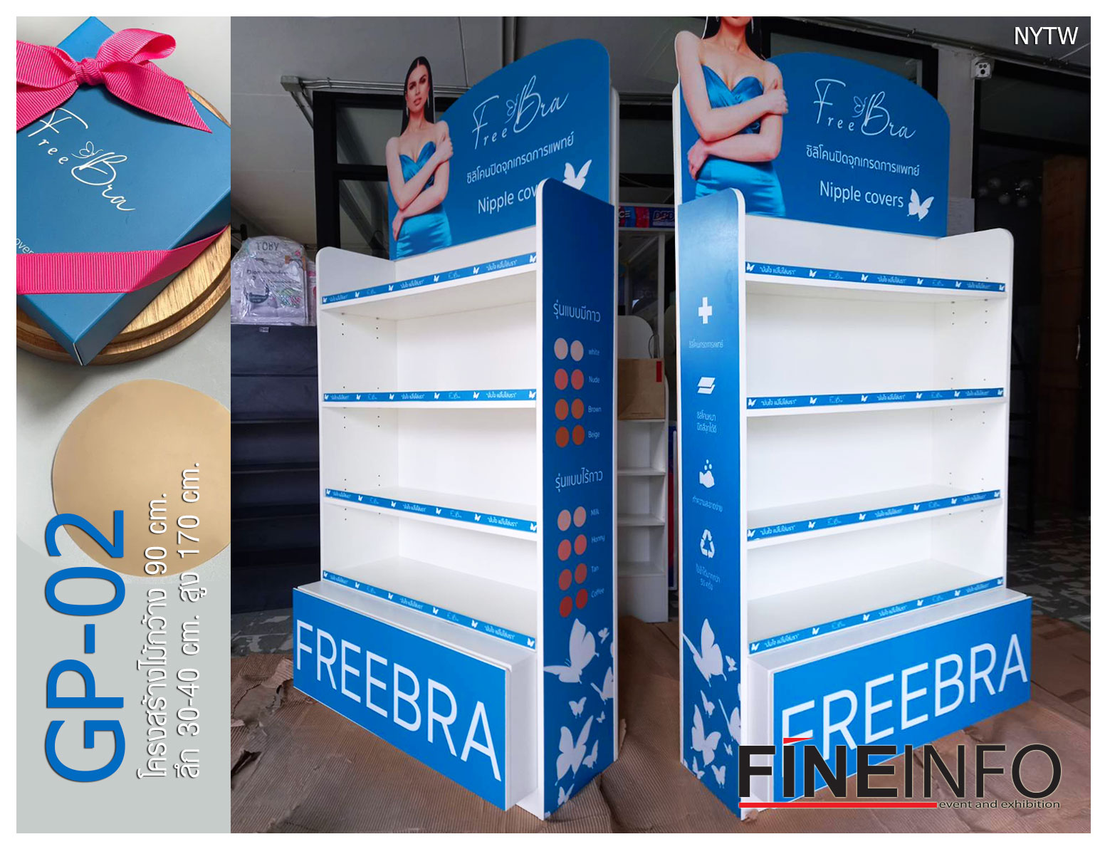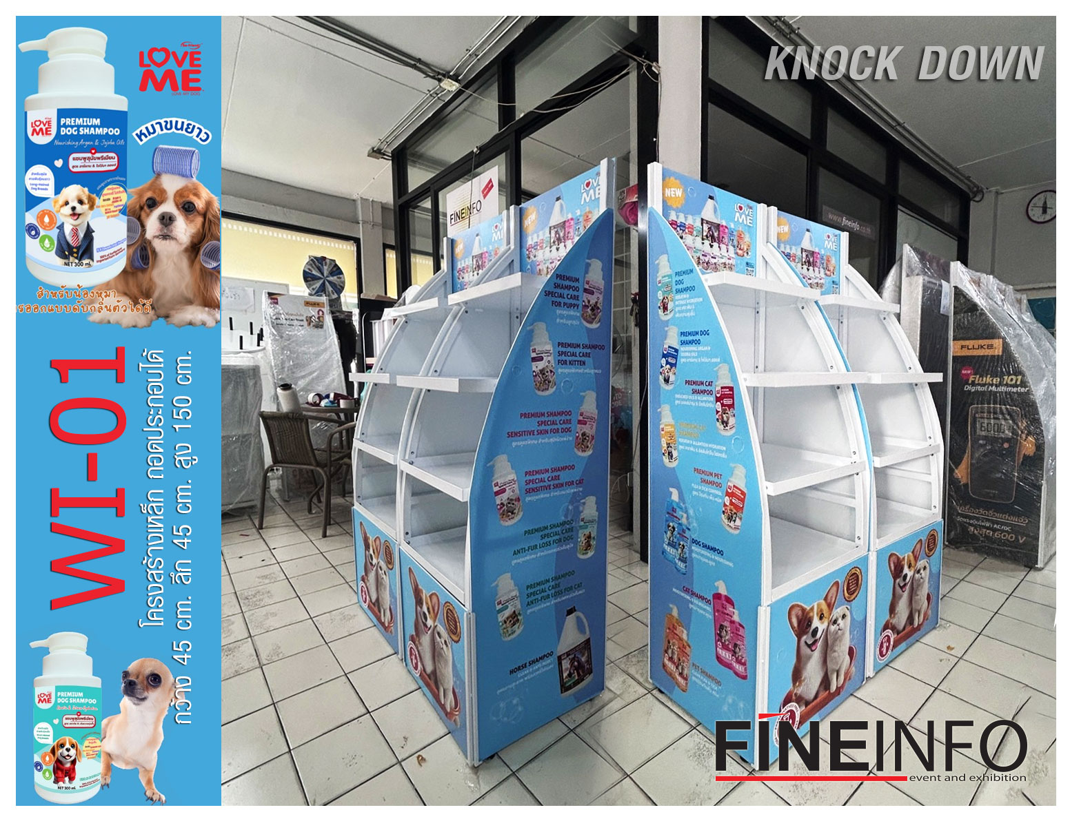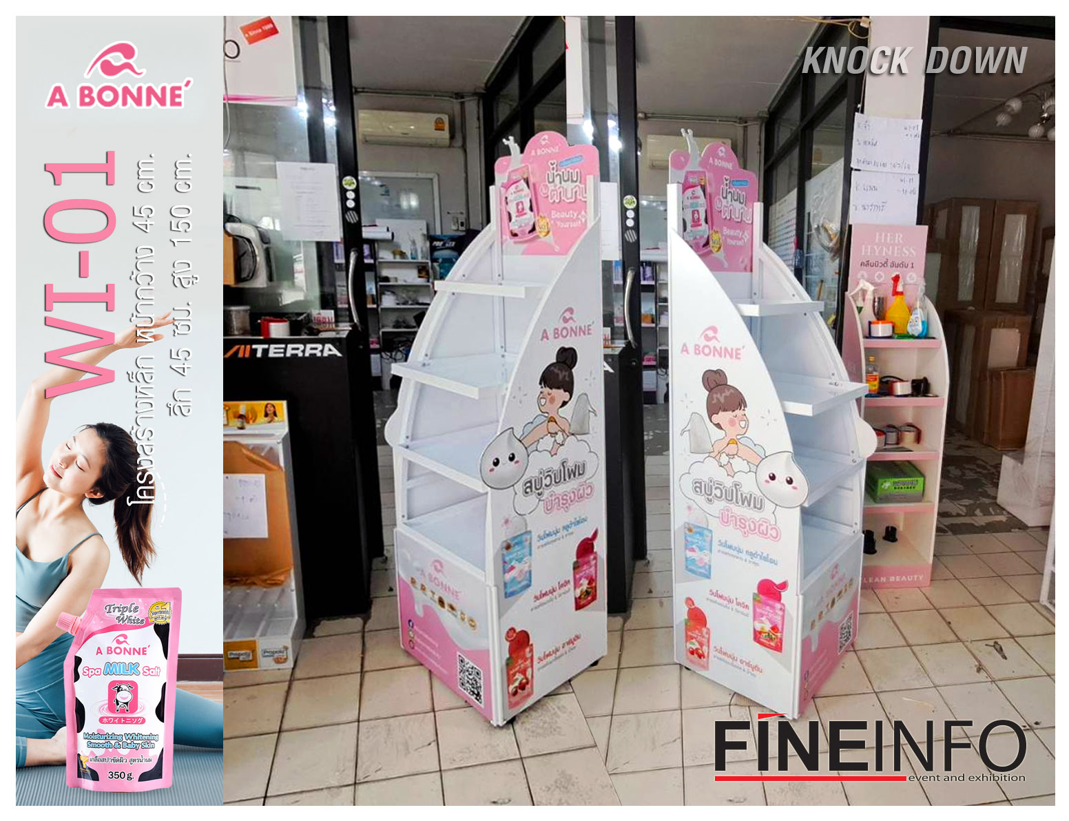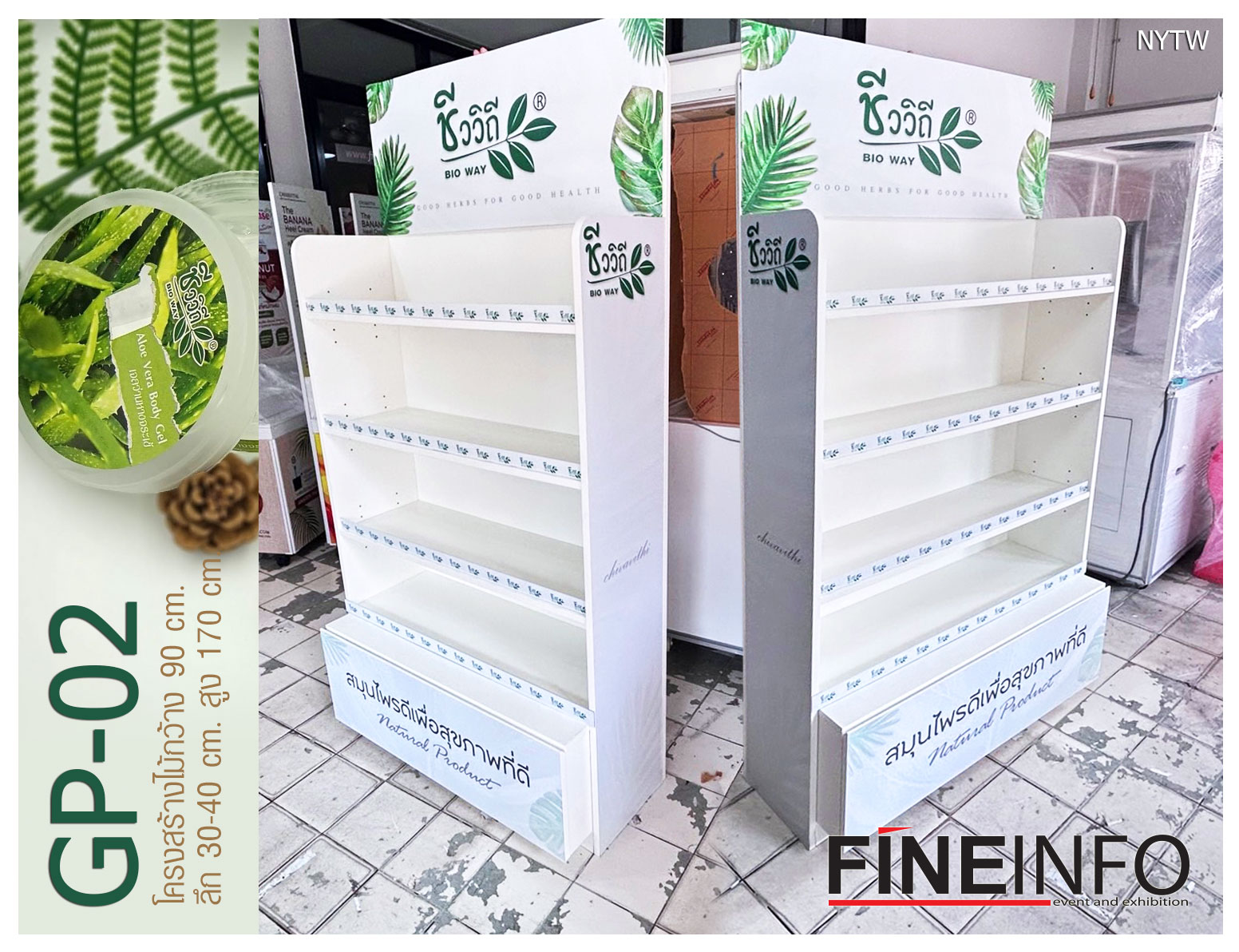 Code :TI-01 : 3,800 B. (พร้อมงานพิมพ์) / ไม่รวมไฟ รายละเอียด : โครงสร้างไม้สีขาว หน้ากว้าง 60 cm ลึก 20 cm สูง 130 cm. งานพิมพ์ PVC+PP Board หนา 3 mm(ไม่สามารถถอดประกอบได้) ปรับระดับชั้นวางได้
