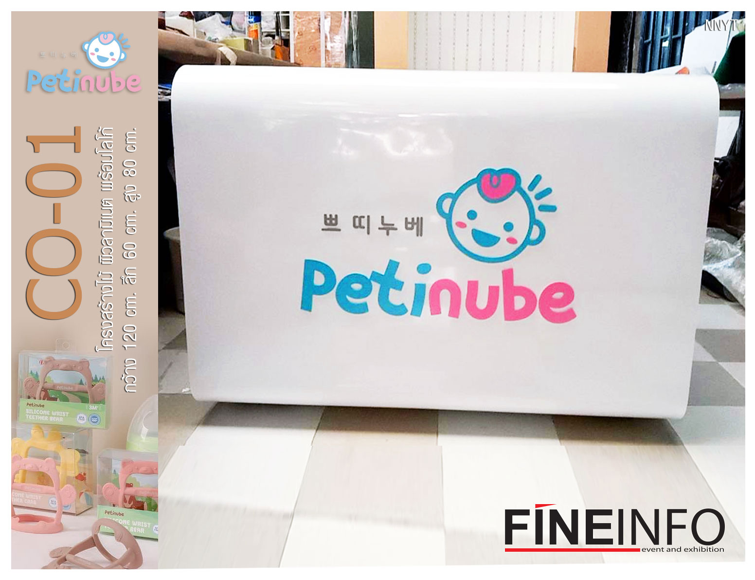 Code :TI-01 : 3,800 B. (พร้อมงานพิมพ์) / ไม่รวมไฟ รายละเอียด : โครงสร้างไม้สีขาว หน้ากว้าง 60 cm ลึก 20 cm สูง 130 cm. งานพิมพ์ PVC+PP Board หนา 3 mm(ไม่สามารถถอดประกอบได้) ปรับระดับชั้นวางได้
